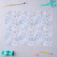 Dieses Design zeigt runde, hellblaue Blumen mit Holzkohlegestühlen auf einem hellblauen Hintergrund. Ideal für decoupage Art, Papier Crafting oder Packgeschenke.