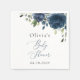 Fügen Sie Ihrer Babydusche mit diesen stilvollen und unvergesslichen Party eine persönliche Touch hinzu! Das Design ist mit marineblau-blauen Blume und Grünpflanzen auf weißem Hintergrund gestaltet.