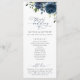 Fügen Sie Ihrer Hochzeitsfeier eine persönliche Touch mit diesen stilvollen und unvergesslichen Party hinzu! Das Design ist mit marineblau-blauen Blume und Grünpflanzen auf weißem Hintergrund gestaltet.