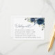 Vervollständigen Sie Ihre Hochzeitssaison mit dieser stilvollen Wunschkarte. Das Design ist mit marineblau-blauen Blume und Grünpflanzen auf weißem Hintergrund gestaltet.