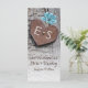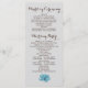 Blaue wilde Blume, metallisch rostes Herz mit Monogramm auf Holz rustikale Hochzeitsfeier und Party-Programm mit einem braunen rosteten Metallherz mit Initialen auf verwittertem grauem Holzbrett und drei aqua blauen Blume. Dieses mit Monogramm Blumenmuster-Design ist vollständig anpassbar und ist Teil eines Hochzeitsgeschehens oder einer Hochzeitskollektion, die perfekt für eine Hochzeitsfeier im Sommer oder Herbst ist.