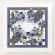 Blaue Blumen und Früchte im Rahmen