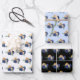 Blaue Blumen und Grünmuster Geschenkpapier Set