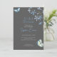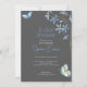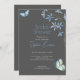 Blaue Blumen und Schmetterlinge Grau Brautparty Einladung