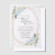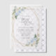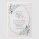 Mit dieser charmanten Hochzeitseinladung laden Sie Freunde und Familie in Stil und Set ein. Das Design ist in Blau-Weiß-Blume, Grün, Goldkonfetti und Goldrahmen gehalten.