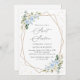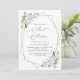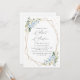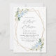 Mit dieser charmanten Geburtstagseinladung laden Sie Freunde und Familie in Stil und Set ein. Das Design ist in Blau-Weiß-Blume, Grün, Goldkonfetti und Goldrahmen auf weißem Hintergrund gehalten.
