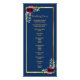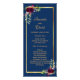An elegant and bohemian, boho style wedding program. Watercolored feathers, Rosen, Flowers in burgundy. Templates for your names, Daten, Details of the ceremony and the party. Falsch gold frame and a chic navy blue background, golden colored letters. Back: Navy blue colored background, golden letters.