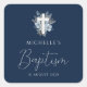 Blaue Blumenkreuz-Taufe Quadratischer Aufkleber