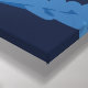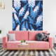 Gerahmte Wandkunst mit blauen und weißen Blume auf dunklem Hintergrund.