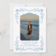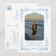 Blaue Blumenrahmen Küsten-Abschlussanzeige in Postkartenform sind die perfekte Möglichkeit, den Erfolg Ihres Absolventen bekannt zu geben. Die Anzeige sieht aus wie eine Postkarte. Dieses blaue und weiße Design hat einen klassischen Look.