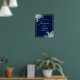 Elegante Rosen in Blau und Weiß schmücken dieses wunderschöne Blumenschild für den Hochzeitsempfang des Abends. Das elegante, weiße Rechteck wird durch hübsche indigofarbene Blume und einen zauberhaften, hellgelben botanischen Kragen hervorgehoben. Die Namen des Ehepaares sind in einer klassischen weißen Kursiv-Schrift innerhalb des Rechtecks dieser modernen Wintergunst für eine zeitgenössische Braut geschrieben.