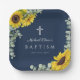 Personalisierte blaue Blütenblume Religiöse Taufe Papier Teller