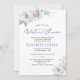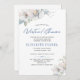 Moderne schicke, virtuelle Baby- oder Mädchendusche mit schieferblauen und blassblauen Elfenbeinblüten-Blume mit grauem botanischem Blätterdach und Blätter und einer schicken, trendigen Handschrift, skurrile Imitate Glitzer dustig blauen Typografie-Skript. +++++++++++ Einfach mit Ihren Daten personalisieren! ++++++++++ Geeignet für trendige und elegante Blumengläser mit dem Thema "Langstrecken-Sozialdistanzierung" virtuelle Video-Chat-Zoom-Konferenz oder Skype-Babyduschen.