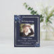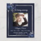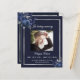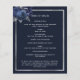 Ein elegantes zweiseitiges Programm. Ein dunkelblauer Hintergrund, ein silbernes Imitat, blaue Blumen und Platz für ein Foto. Personalisieren und hinzufügen von Namen, Daten und Text.