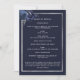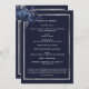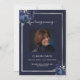 Ein elegantes zweiseitiges Programm. Ein dunkelblauer Hintergrund, ein silbernes Imitat, blaue Blumen und Platz für ein Foto. Personalisieren und hinzufügen von Namen, Daten und Text.