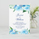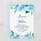 Eine fröhliche Hochzeitseinladung mit schönen Aquarellfarben-Blume in verschiedenen Blau- und Grüntönen und einem zarten, eleganten Drehbuch mit einem soliden hellblauen Hintergrund auf der Rückseite. Für ein schönes und trendiges Blumenthema, umgeben von Natur. Sie können den Text im Menü Personalisieren ändern. Bitte kontaktieren Sie mich für weitere Hilfe. Matching Produkte sind erhältlich.