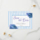 Blaue Blütenkarte und Streifen Save the Date Karte