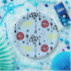 Dieses Design ist ein modernes Bogendesign-Wiederholmuster mit einem hellblauen Hintergrund. Die Hauptmerkmale sind schwarze Pfeile, grauer Bogen und Pfeil, Maronziele, aquamarine Sterne und hellgelbe Sternexplosionen. Sportliches Design für jeden, der sich für Bogenschießen oder Bogen interessiert.