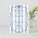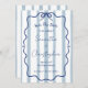 Eine weiche Hochzeit erspart das Datum mit einer süßen Harmonie von staubigen blauen Streifen, einem gewellten Doodle-Rahmen und einem blauen Bogen. Diese einfache, aber romantische Kombination aus Retro-Kulisse und eleganter Skriptkalligraphie macht diese Einladung zu einem einzigartigen und lustigen Erlebnis.