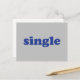 Blaue Buchstaben "Single", graue Postkarte