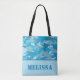 Diese stilvolle personalisierte Tasche kennzeichnet ein blaues Muster der Tarnung (Camouflage) über einem Anpassungsglied an der Unterseite mit einem Schablonenbereich, damit Sie ihn mit einem Namen oder anderem kundenspezifischem Text personifizieren.