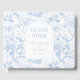 Genießen Sie klassische Eleganz in diesem raffinierten und raffinierten Gästebuch, das von einem zarten, hellblauen Blume-Muster verziert wird und durch einen subtilen blauen Text ergänzt wird. Dieses Gästebuch ist ein ideales Hochzeitsgeschenk für die Neuvermählten und verleiht dem besonderen Tag eine Touch zeitlosen Charmes.