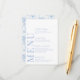 Blaue Chinoiserie Porzellan Hochzeitsmenü Begleitkarte