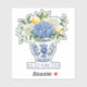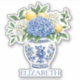 Dieser niedliche Vinyl-Aufkleber verfügt über eine wunderschöne, blau-weiße Chinoiserie-Vase mit blauen und weißen Hydrangea-Blume und Zitronen. Personalisieren Sie Ihre Auswahl an Namen oder Sondertexten. Spaß für personalisierte Geschenktaschen und Gastgeschenke.