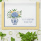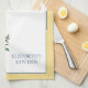 Dieses Küchengeschirrtuch verfügt über eine wunderschöne, blau-weiße Chinoiserie-Vase mit blauen und weißen Hydrangea-Blume und Zitronen und einen Rahmen von passend gelb. Personalisieren Sie Ihre Auswahl an Namen oder Sondertexten. Ideal für neue Zuhause, Appartements oder Schlafzimmer.