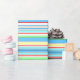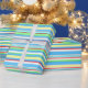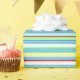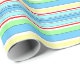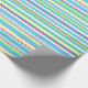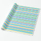 Umhüllungspapier mit gestreiftem Design in blau, grün, gelb, weiß und rot. Gut für jeder Anlass.