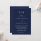 Schön, elegant und einfach, marineblau mit cremefarbenem Hintergrund minimalistische Hochzeitseinladung. Vollständig anpassbar mit Monogramm/Initialen, Namen, Daten, Ort und Farben, um Ihr Hochzeitstil zu gestalten.