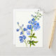 Jeden Tag eine botanische Postkarte mit zwei blauen Delphinium-Blume-Spitzen. Die Printwerbung stammt von der Künstlerin Sarah Trett.