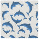 Hellgrauer Nähstoff mit spielerischem Delphinmuster. Küsten-Themenmaterial für Kunsthandwerk oder Nähprojekte.