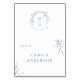 Blaue, einfache botanische Wappen-Monogramm-Platzk Tischnummer