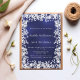 Für einen eleganten 50. (oder jedes Alter) Geburtstag. Ein marineblauer, ungleichfarbiger Hintergrund. Dekoriert mit einem weißen Schneeflockenrahmen. Personalisieren und fügen Sie einen Namen, Alter und Party-Details hinzu. Der Name wird in einer handgeschriebenen Schriftart geschrieben