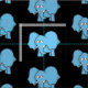 Niedlicher, blauer Elefant Cartoon. Nahtloses Muster. Benutzerdefinierte Hintergrundfarbe.