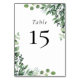Die Tischnummer ist mit einem hübschen, grünen und staubblauen Blattwerk in Aquarellfarben geschmückt. Bearbeiten Sie die Nummer einfach nach Ihren Anforderungen. Die blaue Eukalyptus-Tischnummer.