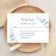Ein weißer Hintergrund, blauer Text auf der Vorderseite. Mit Eukalyptus-Sprigs dekoriert, Stiele. Personalisieren und fügen Sie ein Datum und Ihre Namen. Zurück: staubiger blauer Hintergrund.