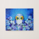 Blaue Eule auf dem Löwenzahn-Gebiet Puzzle