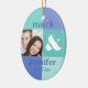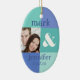 Spaßverzierung mit einer modernen blauen Farbblockbauweise. Addieren Sie Ihr eigenes Foto und fertigen Sie den Text mit den Braut- und Bräutigamnamen und Hochzeitsdatum besonders an, oder was auch immer Sie mögen. Vervollkommnen Sie Andenken für das erste Weihnachten eines Jungvermähltens. PinkInkArt Vorlage!
