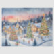 Blaue Farbe Wasserfarbe Decoupage Winter Szene Seidenpapier