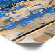 Blaue Farbschälung eines alten Holzposter-Werks