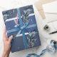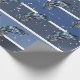 Blaue Federn auf blauen und weißen Streifen Geschenkpapier