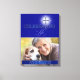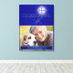 Das Foto der Ehre ist wirklich Set von dem reichen Blau und Silber dieser Celebrating a Life Gedenkstätte Leinwand. Ein Christliches Kreuz ersetzt den Buchstaben T im Celebrating-Text und ein passendes Bar, das das Foto überlagert, enthält Namen und Daten.