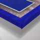 Das Foto der Ehre ist wirklich Set von dem reichen Blau und Silber dieser Celebrating a Life Gedenkstätte Leinwand. Ein Christliches Kreuz ersetzt den Buchstaben T im Celebrating-Text und ein passendes Bar, das das Foto überlagert, enthält Namen und Daten.