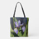 Hübsche wilde blaue Fahne Iris eingebettet in grüne Blätter Natur Tote Tasche. Blumenfotografie von Susan.