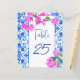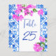 Blaue Fliesen Bougainvillea Amalfi Santorini mediterrane thematische Funktion Template Tischkarte, es ist zwei Seiten können Sie nur eine Seite als Tischnummer verwenden oder Sie können auf der Rückseite mit einer Tischnummer und Gäste Namen.