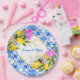 Blaue Fliesen Bougainvillea und Zitrone Amalfi Positano mediterrane Stil maßgeschneiderte Hochzeit Brautparty personalisierte Namen Papier Teller, personalisiert Empfang Party Dekoration.
