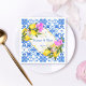 Blaue Fliesen Bougainvillea und Zitrone Amalfi Positano mediterrane Stil maßgeschneiderte Hochzeit personalisierte Namen Papier Servietten, personalisierte Empfang Dekoration.