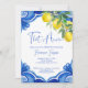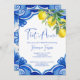 Blue Maiolica Fliesen Zitronen Italienische Brautdusche Einladung bearbeitbare Vorlage Sofortdownload, mediterranes Brautparty Zitrus Braudusche Einladungen